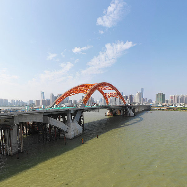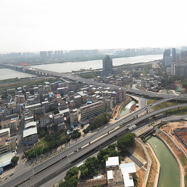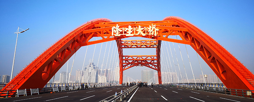 其中隆生大橋全長約1200米,為實(shí)現(xiàn)與周圍路面的有效連接,大橋還創(chuàng)新性配套建設(shè)云山東路雙層立交系統(tǒng):上層實(shí)現(xiàn)隆生大橋與云山東路直行交通的無縫銜接,下層保障惠民大道至云山東路的通行效率,同時(shí)高效接駁江東一號路與人民路。整個(gè)工程涵蓋道路、橋梁(涵洞)、排水、照明、通信、綠化及交通配套設(shè)施建設(shè),總投資約20億元。項(xiàng)目于2015年5月6日啟動建設(shè),于2019年1月11日正式通車。